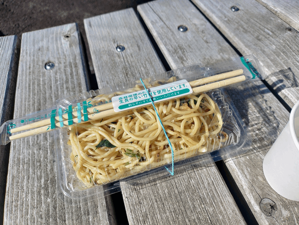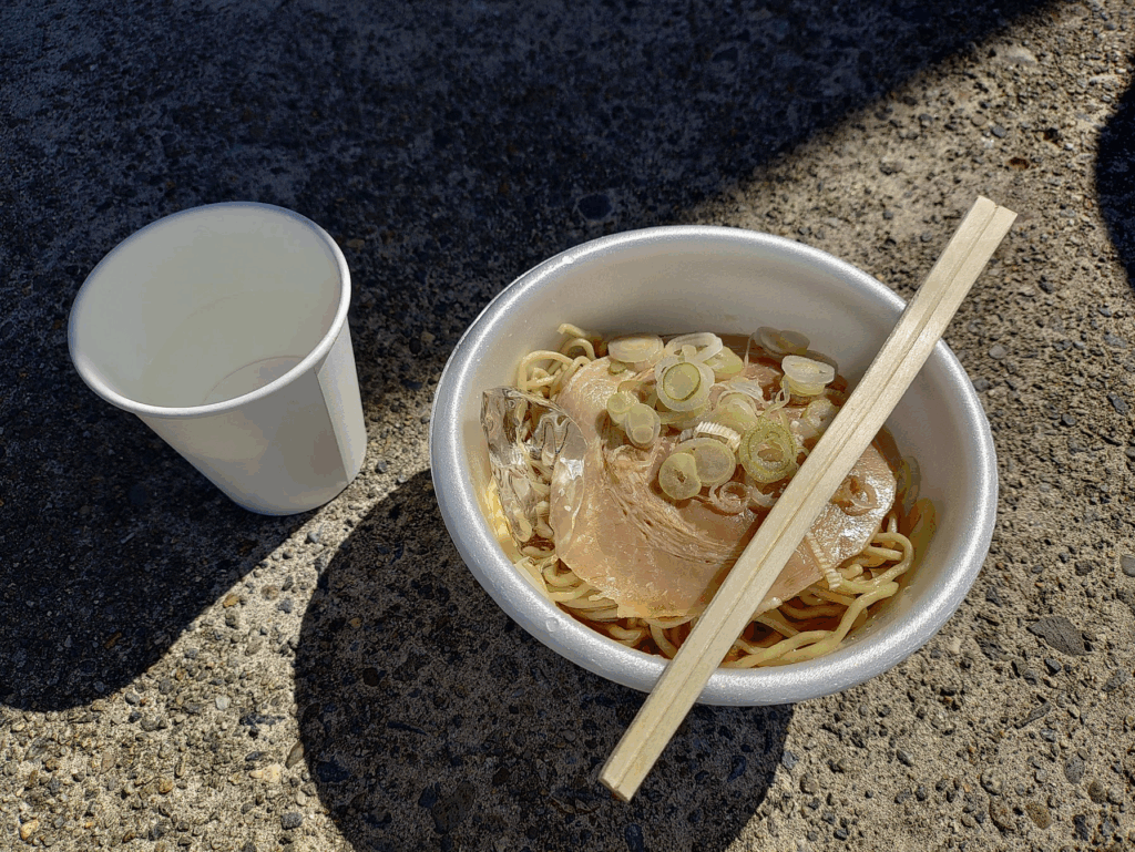 お待ちかねの補給食は…ねぎ塩やきそば (店長、食べ物には目が無いですからね(笑))