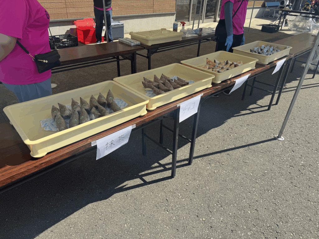 スタート地点に着いて早々に…なんとお饅頭の差し入れが!