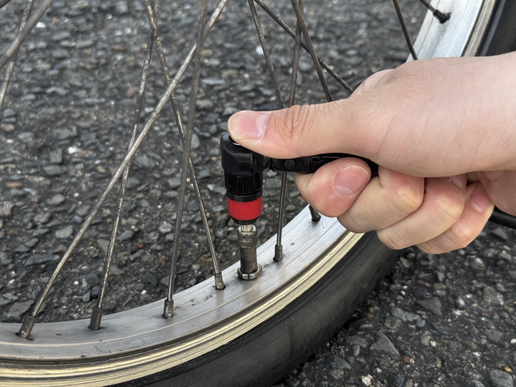 お持ちの自転車のバルブの部分をCLIKのバルブコアに交換して、ポンプヘッドにアダプターを付けます。