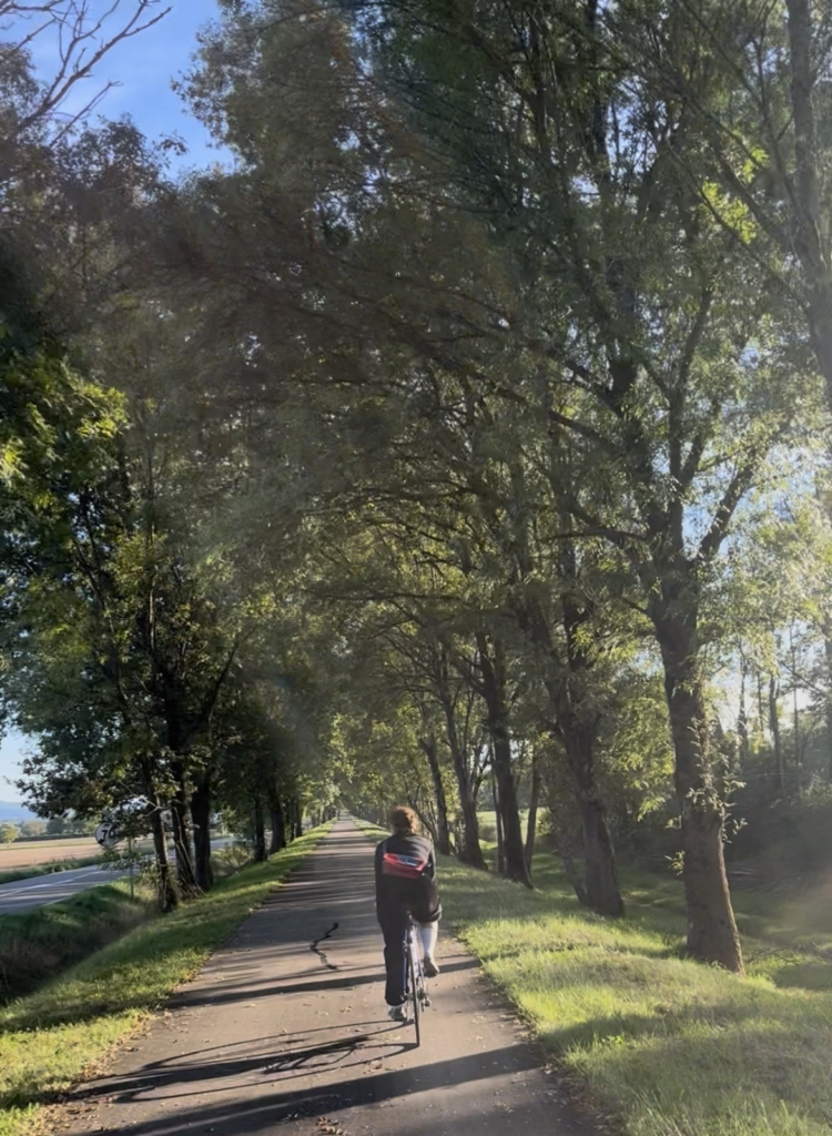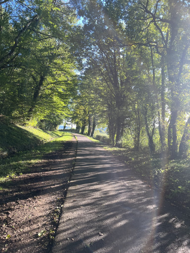 私が滞在していたブルゴーニュ地方の村は丘の上にあったのですが、坂を下った先にある道は、もう息をのむ美しさ。