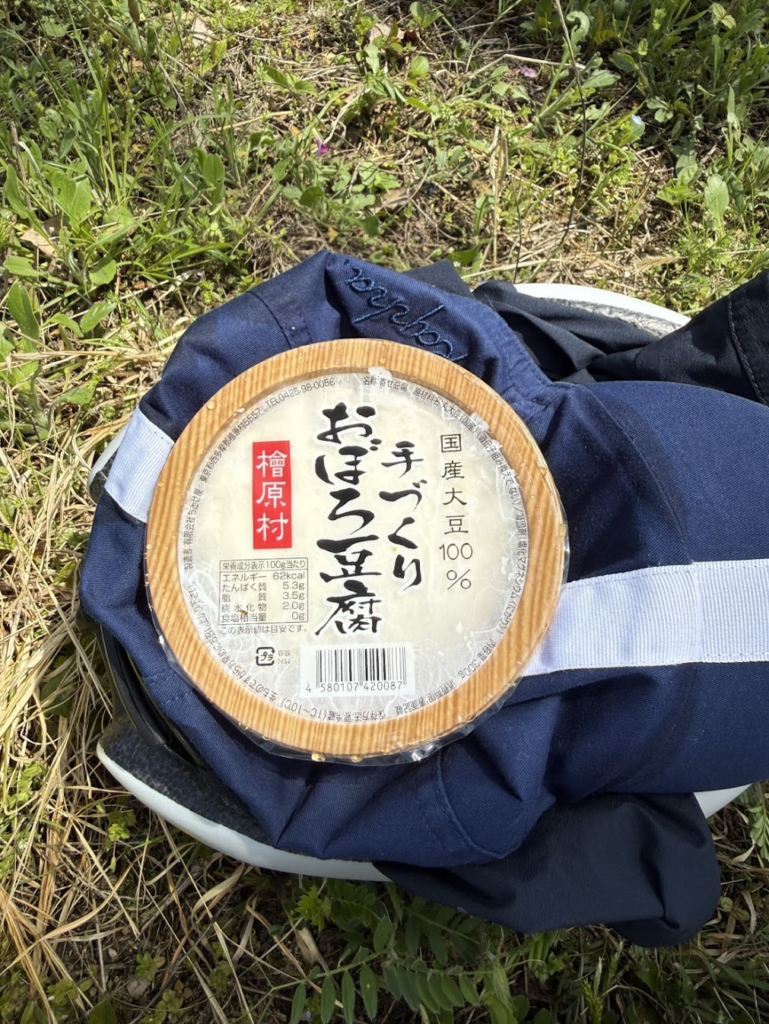 下りきった後は、定番のちとせ屋さんでお豆腐を買って食べました。